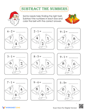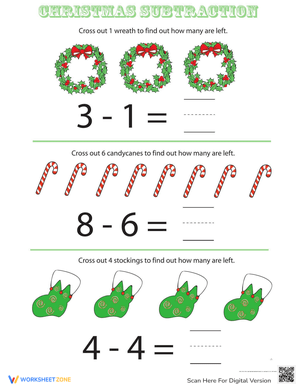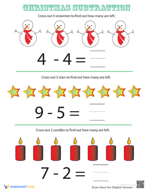 Practice subtraction with this festive Christmas themed worksheet! Reinforce your math skills during the holiday season. Try this subtraction now!