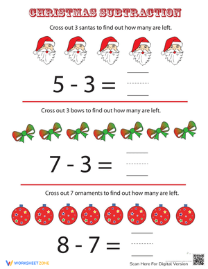 Celebrate Christmas with this fun subtraction worksheet! Practice math skills with holiday-themed activities. Download Christmas Math today and learn!