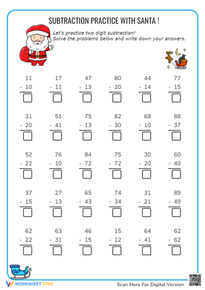 Practice subtraction with this festive Santa worksheet! Improve math skills during the holiday season. Download now for an engaging activity!