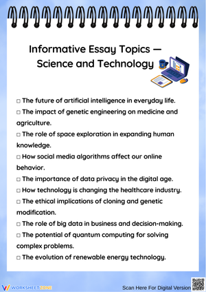 Explore informative essay topics on science and technology, covering AI, genetic engineering, space exploration, data privacy, renewable energy, and healthcare!