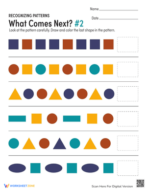 Enhance Pattern Recognition skills with our 'What Comes Next?' worksheet! Identify patterns and improve critical thinking skills. Try it now!