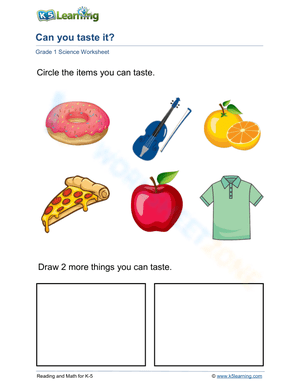 Teach kids about the sense of smell with this fun science worksheet! Circle items with scents and draw two more things you can smell. Perfect for Grade 1.