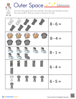 Make learning fun with this space-themed subtraction worksheet! Enhance math skills and enjoy an engaging subtraction activity. Download and explore!