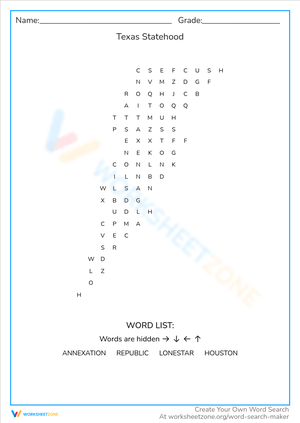 Discover Texas Statehood with this worksheet, perfect for history enthusiasts and students. Download now and explore Texas history!