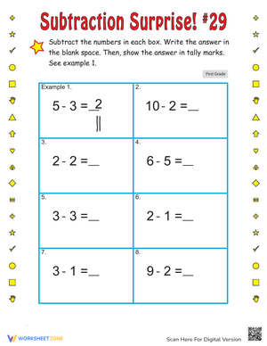 Make subtraction fun with this surprise themed subtraction worksheet! Perfect for engaging and creative learning. Download, print, and reveal the fun while subtracting!