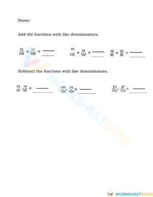 Practice adding and subtracting fractions with like denominators using this worksheet. Reinforce basic arithmetic skills and simplify your answers. Download it now!