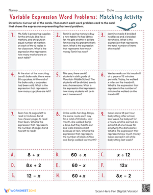 Match Variable Expression Word Problems and boost your algebra skills! Perfect for making connections between real-world scenarios and equations. Download now!