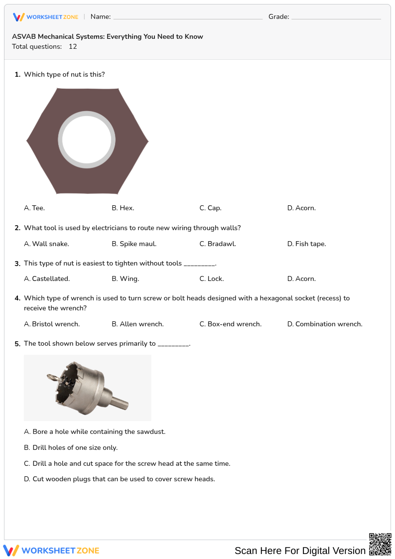 The machines section in the ASVAB test evaluates your knowledge and understanding of various mechanical concepts and principles. This section tests your ability to comprehend and analyze mechanical systems, simple machines, tools, and mechanical motion. To excel in this section, you need to be familiar with topics such as levers, pulleys, gears, hydraulics, and pneumatics. Additionally, questions in this section may require you to solve problems related to force, motion, work, and energy. To prepare effectively for the machines section, it is essential to practice with ASVAB study materials specifically tailored to this subject. By dedicating time to understanding the fundamental principles and regularly practicing problems, you can boost your confidence and performance in this section. Remember to utilize resources such as practice tests, study guides, and online tutorials to enhance your knowledge and skills in machine-related topics. With the right preparation and a solid understanding of mechanical concepts, you can tackle the machines section of the ASVAB test with ease and achieve a high score.
