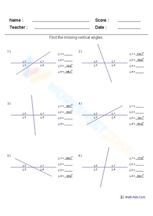 Find Vertical Angles easily with this practice worksheet. Improve your geometry skills and understanding of vertical angles. Download now and start learning!