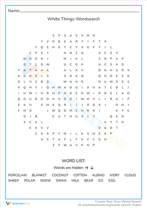 Engage in a fun activity with this word search focused on White Things. Perfect for vocabulary expansion. Explore White Things and enjoy the challenge!