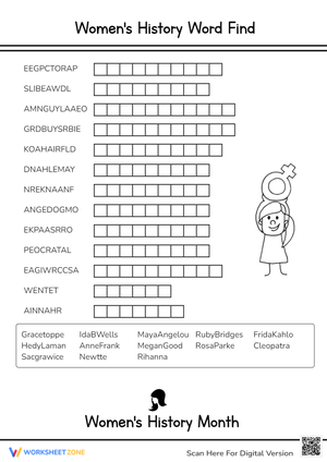 Celebrate Women's History Month with our fun Word Search worksheet! Learn about influential women and enhance your vocabulary. Play now!