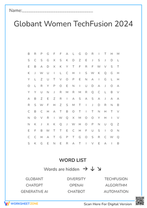Word list: GLOBANT, DIVERSITY, TECHFUSION, CHATGPT, OPENAI, ALGORITHM, GENERATIVE AI, CHATBOT, AUTOMATION