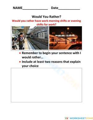 Entertain kids with 'Would You Rather' scenarios! This worksheet stimulates critical thinking and decision-making. Download now for a fun learning activity!