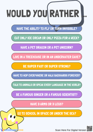 Engage kids with fun 'Would You Rather' questions that promote critical thinking and decision-making. Download now and get talking!