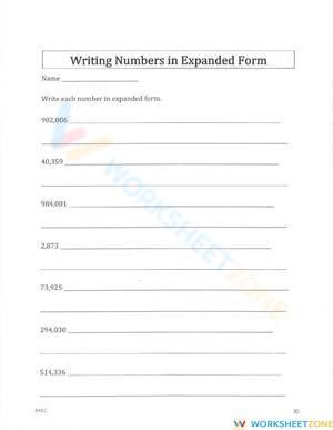 Practice writing numbers in expanded form! Reinforce place value and number sense with this educational worksheet.
