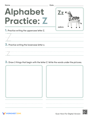 Practice the letter Z with this alphabet worksheet! Perfect for young learners to reinforce letter recognition. Download to enhance your writing skills!
