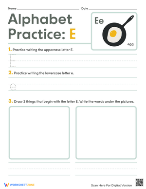 Learn and practice the letter 'E' with this alphabet worksheet! Perfect for improving letter recognition. Start alphabet practice today!
