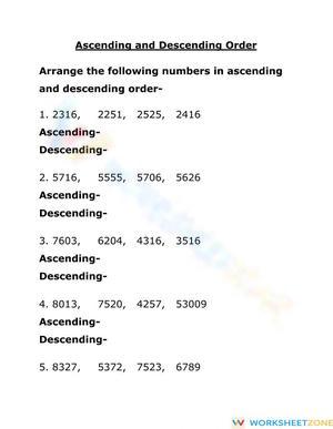 Ascending and Descending Order online worksheet for Second Year. You can do the exercises online or download the worksheet as pdf.