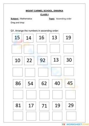 Ascending order online exercise for CLASS 1. You can do the exercises online or download the worksheet as pdf.