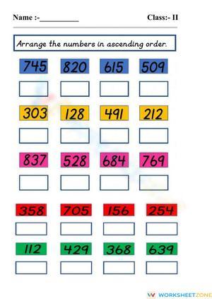 Ascending order online worksheet for Grade2. You can do the exercises online or download the worksheet as pdf.