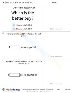 Find the better buy with unit prices! This worksheet helps develop math skills for everyday shopping. Start comparing prices and save money today!