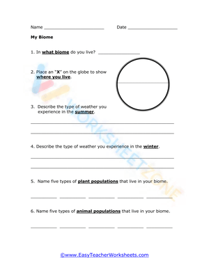Biomes are large areas of the earth with defined climates and plant life. Students connect different biomes to climate, plant life and animal life.