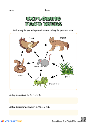 Explore food webs and energy flow with this interactive worksheet. Perfect for Grade 6–9 students learning about ecosystems and the relationships between different organisms in nature.