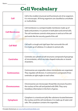 How does a minute cell accomplish complex tasks? Learn about the various organelles and the function of each part of the cell with this cell terminology worksheet for 7th grade and 8th grade students. Included here are apt and precise definitions of cell, cell wall, cell membrane, Golgi apparatus and more.
