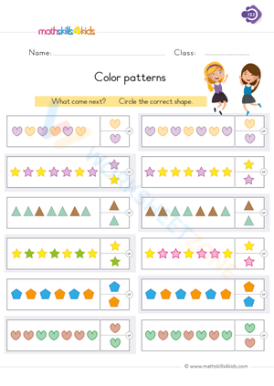 In this math worksheet, children utilize their pattern recognition abilities to identify and extend shape patterns. Each sequence includes two distinct shapes arranged in a predetermined pattern. After analyzing each sequence, students utilize the provided spaces to continue the pattern. This resource is specifically designed for first-grade math curriculum and aims to establish a foundation in geometry and enhance the pattern identification skills essential for later math success.