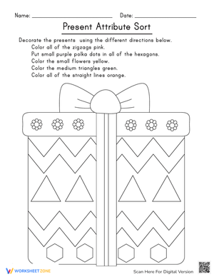 Sort presents based on their attributes! This worksheet enhances sorting and classification skills. Download now and develop logical thinking!