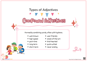 Learn about compound adjectives like "well-known" and "user-friendly." Practice forming and using these hyphenated adjectives with this fun worksheet!