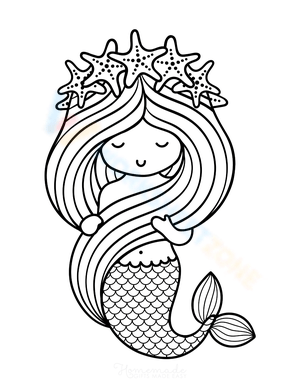 Meet a cute mermaid wearing a starfish crown with this enchanting mermaid worksheet! Download now for ocean-themed coloring fun!