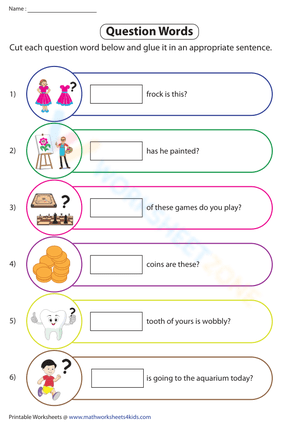 Had it not been for the WH question words, we couldn't get the specifics in characteristics, times, places, people, and things. Be thankful to words like "which" and "whose" as you complete this cut and glue pdf.
