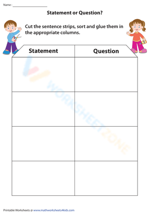 Show children that you are as imaginative a teacher as any other, by helping them do this activity. They cut the sentence strips, sort them as sentences and questions, and glue them in the appropriate column.