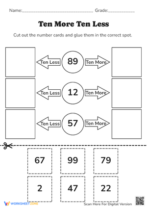 Give your kiddos a chance to improve your math skill about "10 less and 10 more" when playing with this cut-and-glue activity.