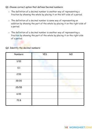 Decimal numbers online worksheet for 5. You can do the exercises online or download the worksheet as pdf.