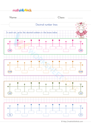 Learn about decimal number lines with this free printable math worksheet.