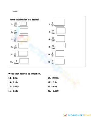 Decimals and fractions online worksheet for 4. You can do the exercises online or download the worksheet as pdf.