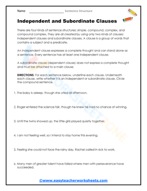 Master sentence structure by distinguishing between dependent and independent clauses with this worksheet. Improve writing skills today!