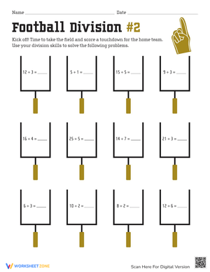 Improve division skills with this engaging football-themed worksheet! Make math fun and relatable while enhancing division abilities effectively. Start now!