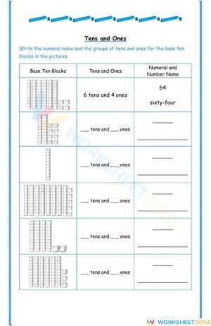 Tens and Ones interactive activity for Grade 2. You can do the exercises online or download the worksheet as pdf.