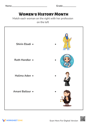 Teach kids about impactful women in history with this engaging matching worksheet. A perfect classroom resource for Women’s History Month!