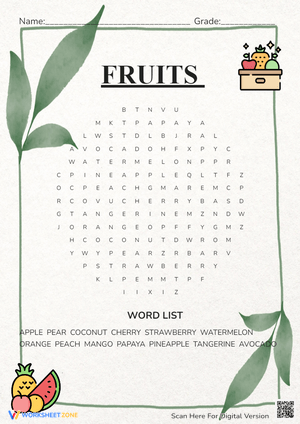 Discover a variety of delicious fruits with this educational worksheet! Learn about their benefits. Explore Fruits now and start a healthy eating habit!