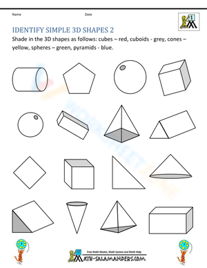 Identify simple 3D shapes with this educational worksheet. Learn to recognize and name common three-dimensional shapes. Get started today!