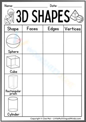 Explore the world of 3D shapes with this worksheet, where students identify and name common three-dimensional figures.