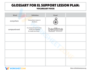 Utilize this glossary as a supplementary resource for the EL Support Lesson: Vocabulary Focus.