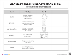 Incorporate this glossary as a companion to the EL Support Lesson: Gathering Information from Multiple Sources.