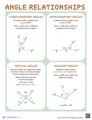 Learn about angle relationships with this comprehensive handout! Understand complementary, supplementary, and vertical angles. Download now for effective learning!