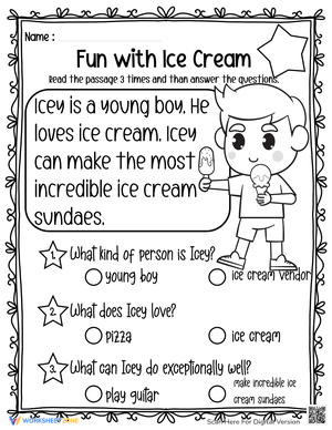 Ice cream for sale! Sam, Kate, and Becky need help keeping track of how many ice cream cones they've sold. Your child will complete a pictograph and answer questions to help them. Help your child use graphing and data analysis in a relateable scenario with this ice cream graph worksheet.