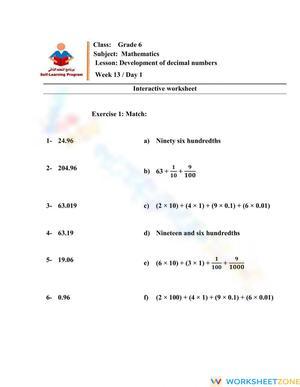 Decimals interactive worksheet for 6. You can do the exercises online or download the worksheet as pdf.
